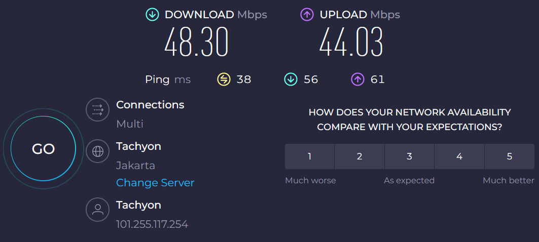 Dengan kecepatan hingga 40Mbps pada saat download dan upload untuk internet di rumah anda, sehingga cocok untuk kegiatan harian seluruh anggota keluarga serta untuk streaming video tanpa FUP bulanan