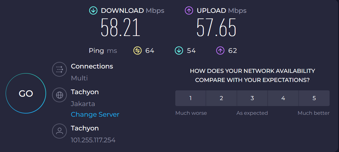 Dengan kecepatan hingga 50Mbps pada saat download dan upload untuk internet di rumah anda, sehingga cocok untuk aktivitas sekolah, kerja, serta video streaming seluruh anggota keluarga tanpa FUP bulanan